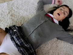 Cute japanese schoolgirl gets fucked in a lot of positions